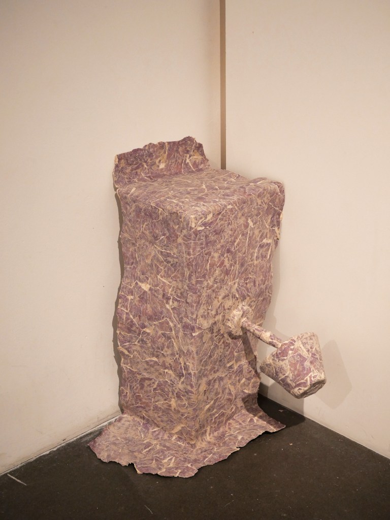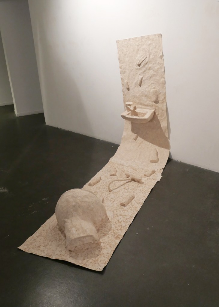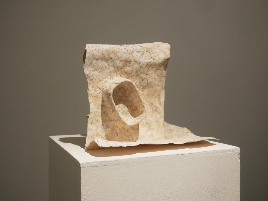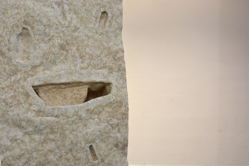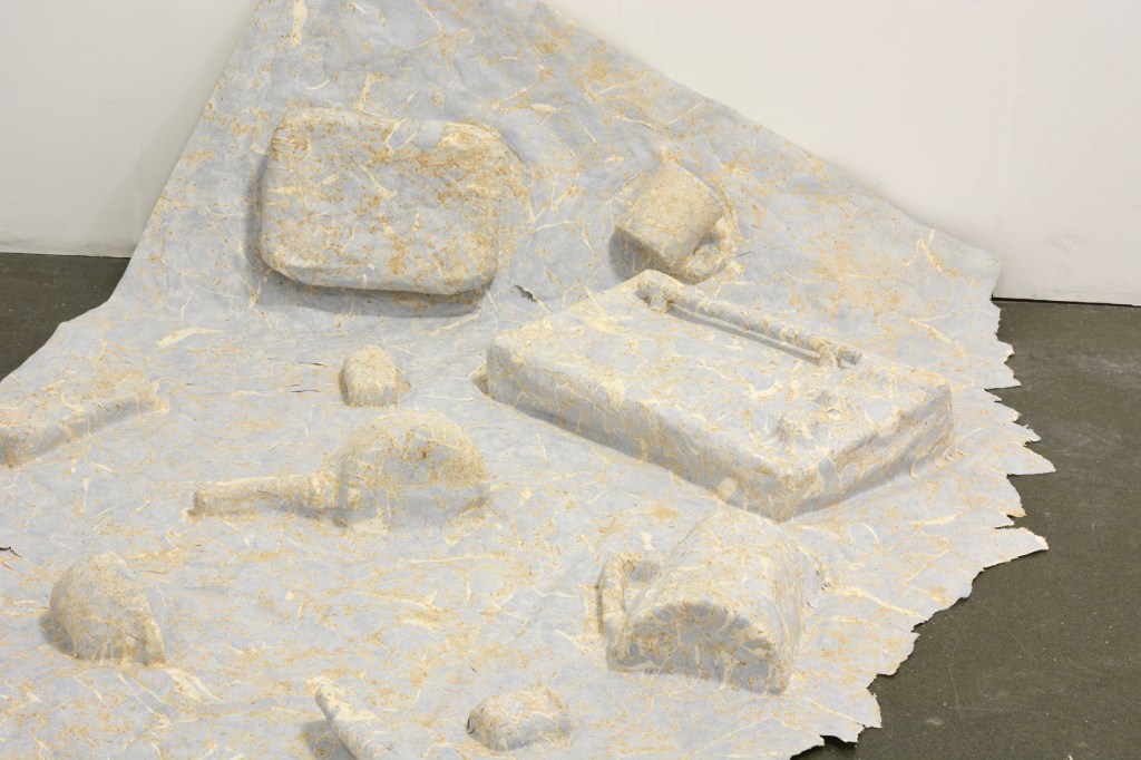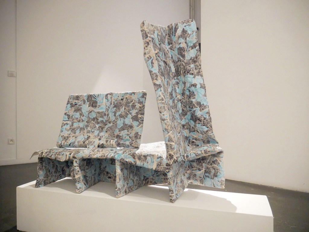 Série de bas-reliefs en papier mâché avec des morceaux de papiers peints, 2023