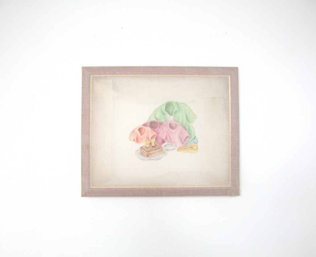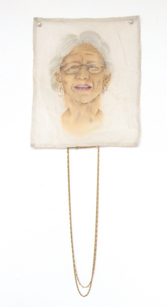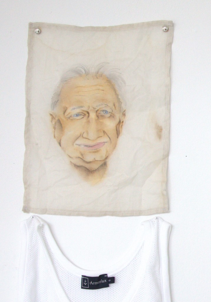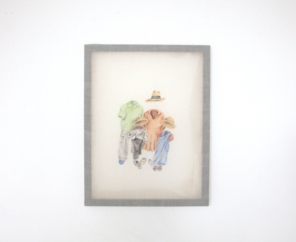 Objets souvenirs, Série de peintures à l’aquarelle de portraits sur des voiles associés à des objets, 2024